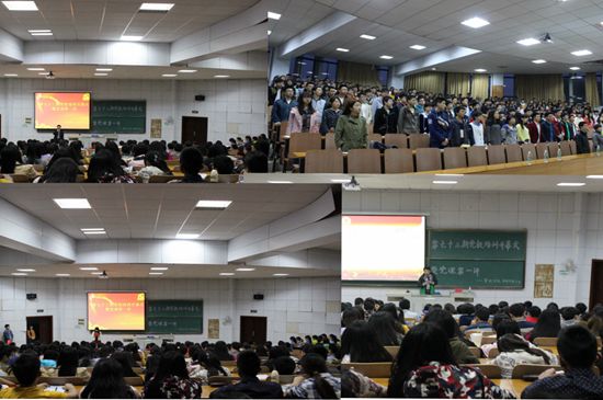 为进一步做好党员教育工作,加强入党积极分子培养,4月2日晚上7:00365英国上市官网在线第二十八期分党校开幕式暨党课第一讲在07-T102举行。马克思主义学院喻学林副教授以“学习2015全国两会精神 ”为主题带来了党课第一讲,365英国上市官网在线材料学院入党积极分子参加。