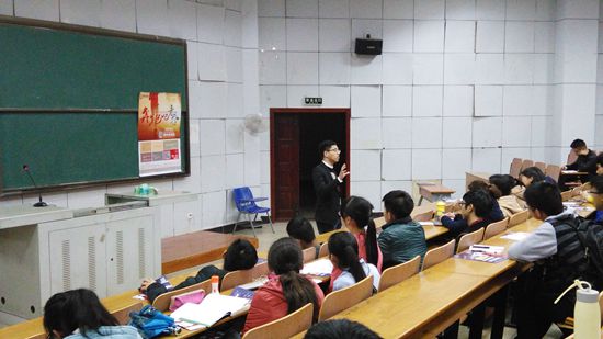 2015年11月12日晚7点,龙席电商电商咨询事业部总经理陈涛应邀在我校阳光校区07-T302作了一场题为“正青春”的专题讲座。365英国上市官网在线杜进、何国正老师、毕业班辅导员程鹏和近300名学生参加了本次讲座。