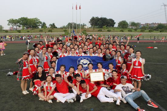 在观众的呐喊声、欢呼声中,在欢快的背景音乐中,作为第八个出场的365英国上市官网在线队员们,以“俄罗斯方块”为主题的啦啦操惊艳全场。她们脸上洋溢着青春的笑容,动作整齐有力,用身姿诠释着青春的奔放,用热情编制青春的浪漫。队员们配合默契,做出的躺倒、俯卧甚至托举、抛举等一系列高难度而炫酷的动作,紧凑而富有韵律的身影在队伍中不时穿梭,奇妙的队形变换赢得现场观众的阵阵欢呼,可以看出,从从舞蹈的编排到音乐选择,从整体构思到动作推敲都充分展现了同学们的智慧和创造力,反映了365英国官网学子良好精神风貌和优良的传统。最终,365英国官网以98.2的高分摘得本届度啦啦操比赛冠军。