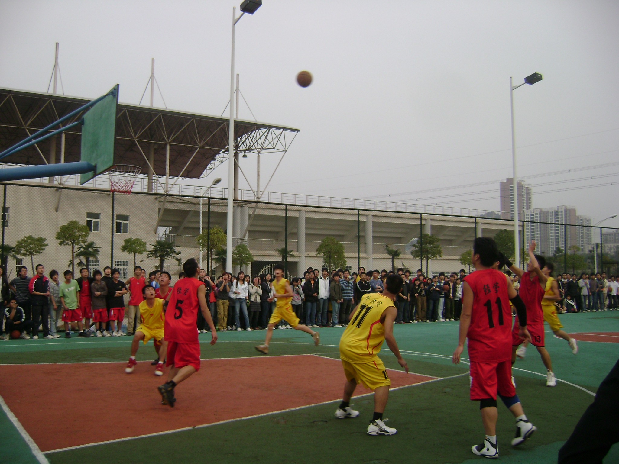 4月2日下午4:00经管院队又与纺材院队在阳光校区篮球场进行了阳光校区与南湖校区的总决赛,经管队员们全力以赴,最终还是以微弱的分差惜败。但是经管院队员们精彩的表现还是赢得了场上热烈的掌声。