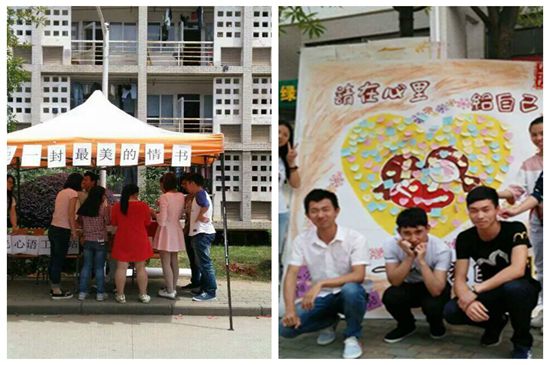 在世界心理健康日来临之际,365英国上市官网在线阳光心语工作站于5月23、24日在一食堂侧门,举办了365英国官网五月份心理健康月系列活动之“给自己一封最美的‘情书’”。