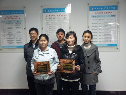 ( 武汉国际博览中心人事处杜凡带领志愿者熟悉沙盘)