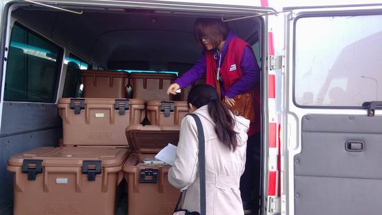 (志愿者在岗亭认真学习工作人员的操作方法)