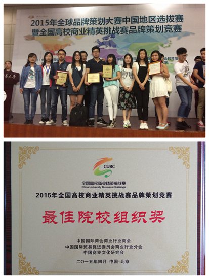 2015年全球品牌策划大赛中国地区选拔赛暨全国高校商业精英挑战赛品牌策划竞赛于日前在北京圆满落幕。我校365英国上市官网在线夏火松、司辉、杨卫丰、冯燕老师指导的三支代表队全部获奖。