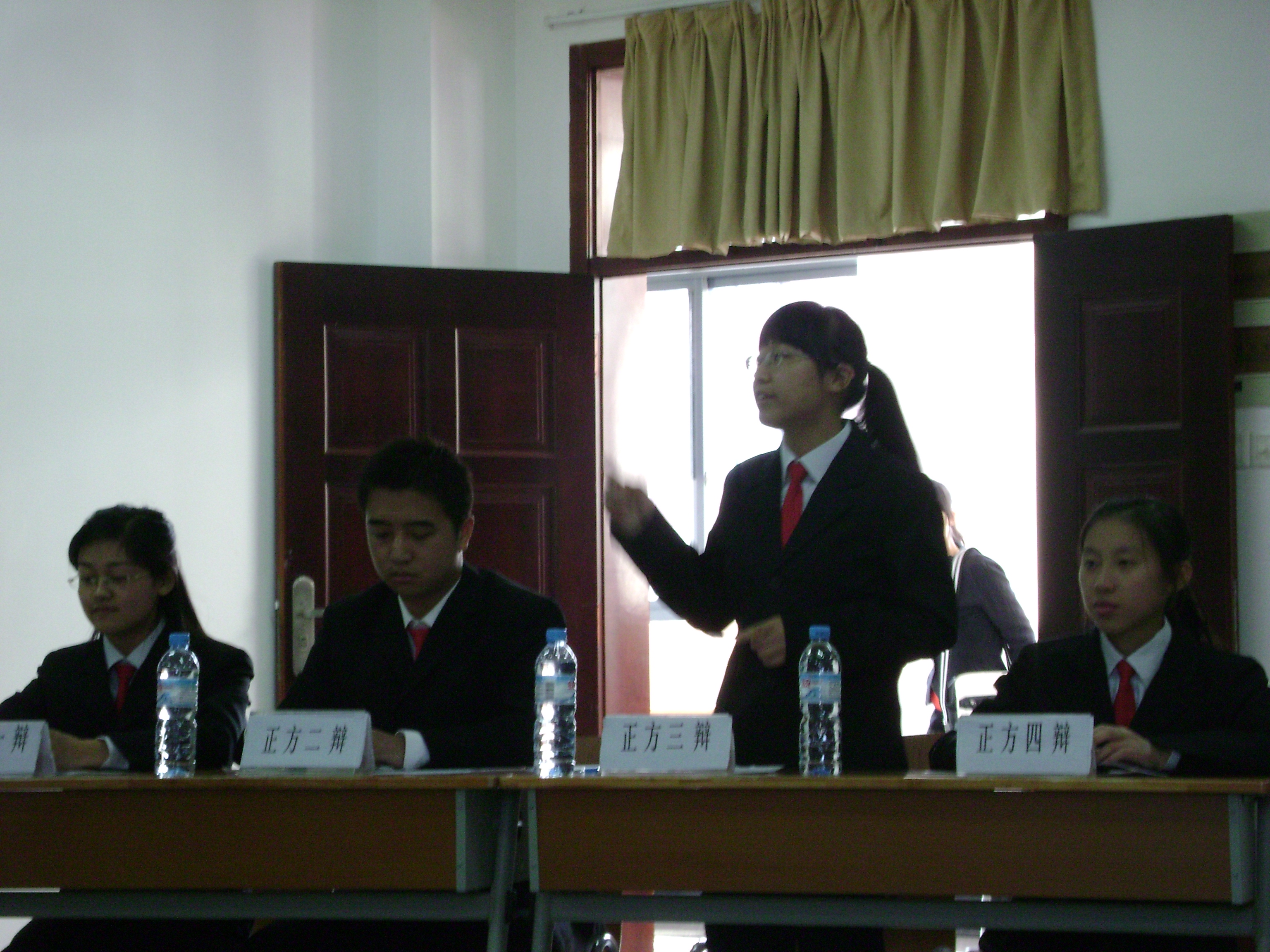 在助威团“经管雄风,辩场争锋”的口号声中,经管院辩手以统一的着装闪亮登场.经管1队迎战计科队,经管2队对决理学院.他们的辩题分别为“现代人应效仿太公钓鱼还是毛遂自荐"、“流行文化对人文精神的发展起推动作用还是阻碍作用".对此,双方展开了激烈角逐,其中不乏诙谐幽默,唇枪舌战.但最终,经管队的辩手们凭借成竹在胸的勇气、有理有据的陈述、旁征博引的论证和精妙绝伦的口才,征服了众位评委和在场观众,赢得了阵阵掌声,以压倒性优势取得胜利.