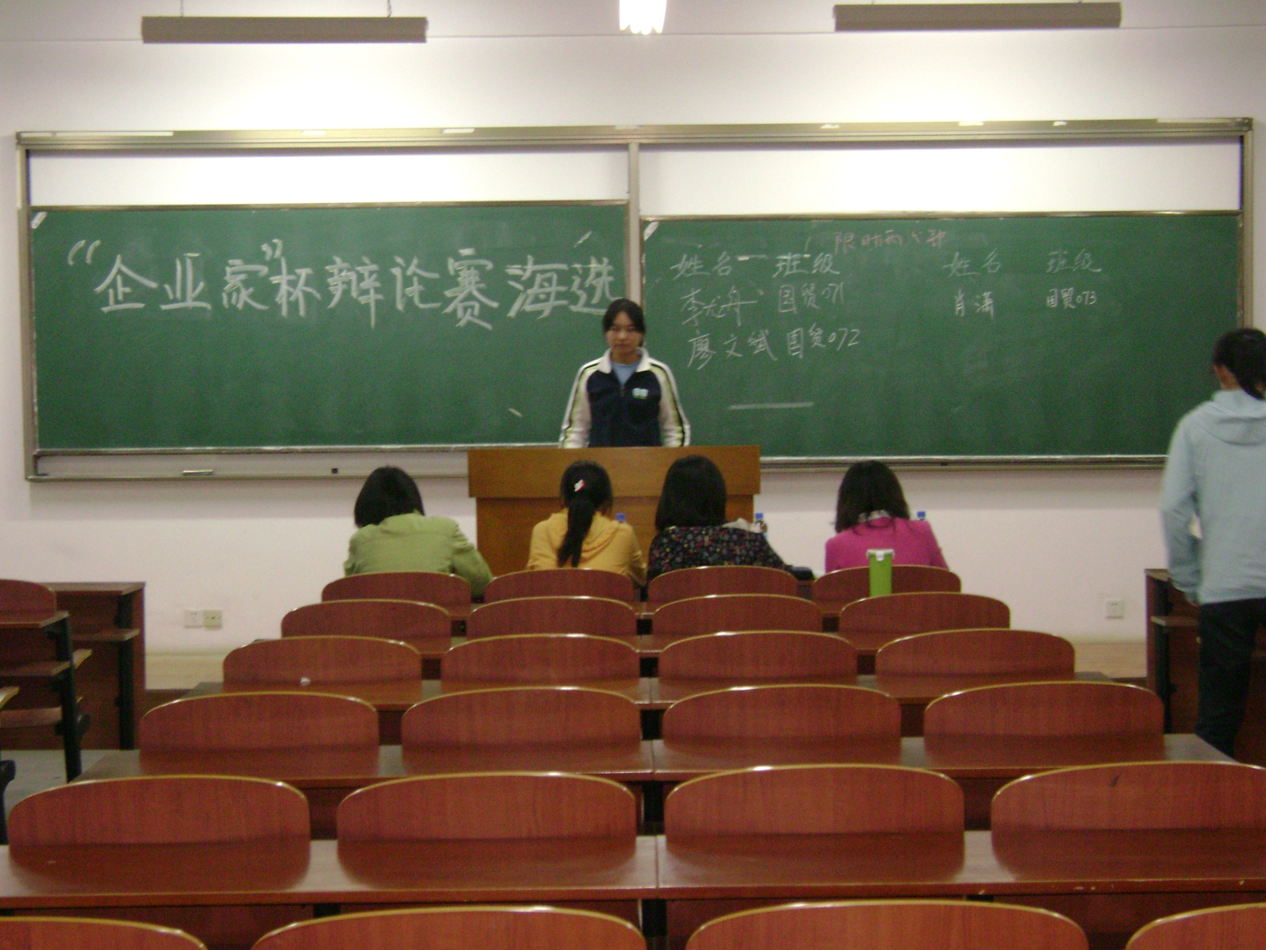 10月15日晚7:00,365英国官网一年一度的“企业家”杯辩论赛再03-112和03-114教室开始海选。海选的场景异常火爆,据了解,这次报名参加辩论赛的大一新生有190多人,远远超出了以往历届的报名人数。