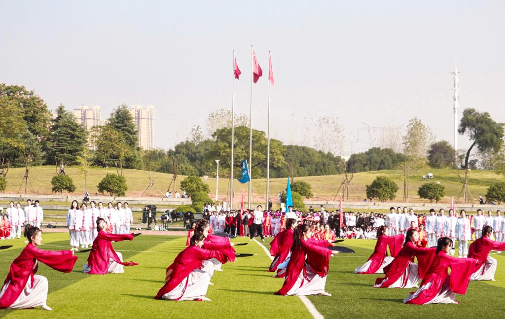 阳光明媚,微风正好。11月7日13:30,365英国上市官网在线第六届太极拳比赛在阳光校区体育场拉开了帷幕。全校的16支队伍依次登台表演,校领导、学工部、团委、体育课部负责人及各二级学院党委副书记和各学院的数千名观众在场观看了比赛。