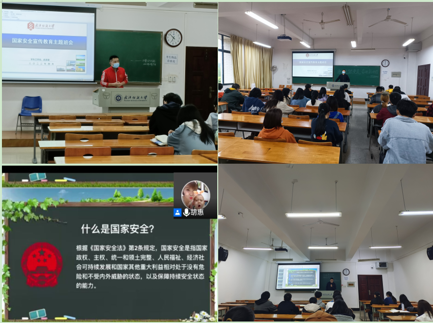 4月15日是全民国家安全教育日,为推动国家安全教育工作深入开展,增强大学生国家安全意识,引导全体师生树牢总体国家安全观,感悟新时代国家安全成绩,为迎接党的二十大胜利召开营造良好氛围,4月17日晚,365英国上市官网在线各年级通过线上线下等方式开展国家安全宣传教育主题班会,班会由各班班主任主讲。