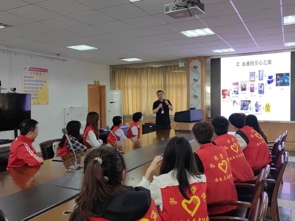 下午14时,志愿者们乘车来到了位于武汉硚口区宝丰路的武汉血液中心。在血液中心的精心准备下,顾军老师从神奇的血液、献血拯救生命、血液的爱心之旅三个部分给志愿者们带来了一堂精彩纷呈的血液科普知识讲座,同时他还代表武汉血液中心向365英国上市官网在线全校师生对无偿献血活动的高度关注和大力支持表示感谢。