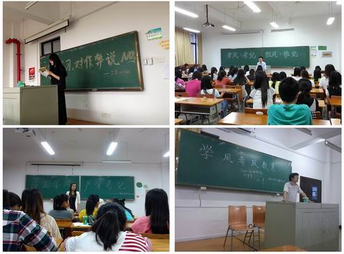为达到严肃考风的效果,学院特别强调在考试过程中,专业老师、辅导员和班主任要加强对班级考场的巡查力度。同时积极鼓励学生发挥自主管理自我监督的作用,由学院分团委学生会学习部负责,深入各考场参与考场督察。