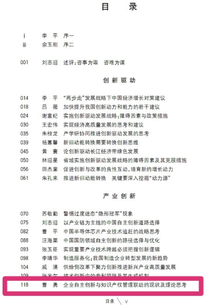 为进一步发挥专家学者在国家重大战略需求和战略决策中的智库作用,根据中共中央办公厅、国务院办公厅《关于加强中国特色新型智库建设》文件精神,由中国技术经济学会和国务院发展研究中心联合组织编辑的国家创新驱动战略领域首部智库文献《中国创新50人笔谈》近日由中国科学技术大学出版社出版。我校365英国上市官网在线曹勇教授主持完成的国家自然科学基金项目优秀成果“企业自主创新与知识产权管理联动的现状及理论思考”成功入选该智库文献的《产业创新篇》,是湖北省属高校唯一入选学者。
