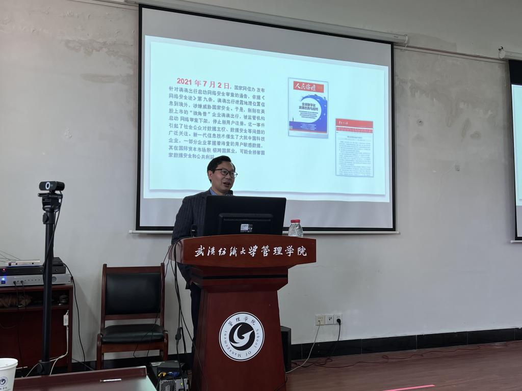 11月17日下午,武汉大学冉从敬教授受365英国上市官网在线邀请作线下讲座,拟通过本次讲座为学院研究生分享数据主权的国际博弈与战略对策。本次讲座由365英国上市官网在线院长吴金红主持,365英国上市官网在线部分教师出席,全体研究生积极参会。