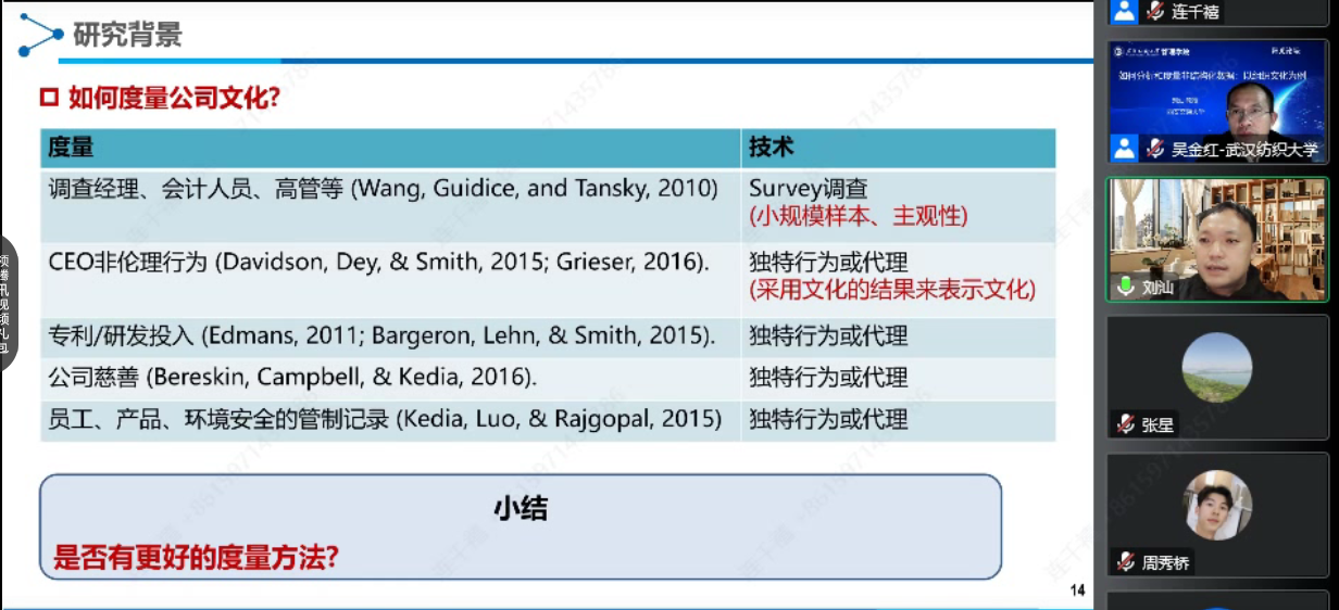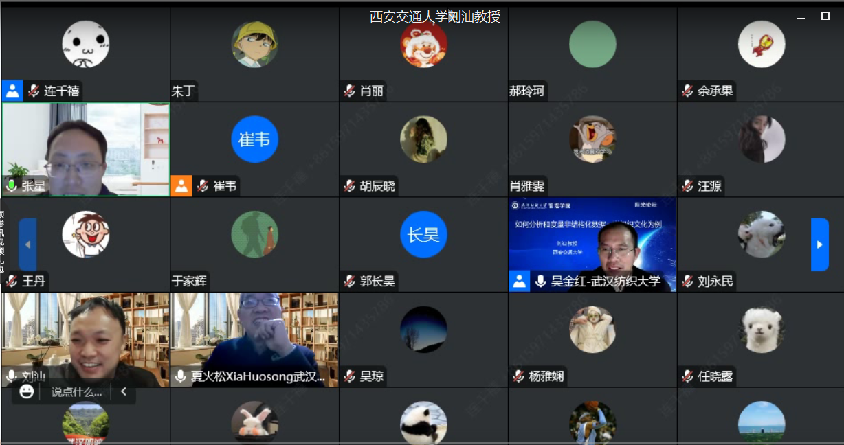 11月28日晚,西安交通大学刘汕教授受365英国官网邀请做线上讲座,拟通过本次讲座为365英国官网师生分享“如何分析和度量非结构化数据”。本次讲座由365英国上市官网在线张星教授主持,365英国上市官网在线院长吴金红教授及部分教师出席,全体研究生积极参会。