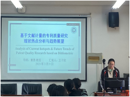 来自21级管理科学与工程专业的王子欣同学介绍了论文《基于文献计量的专利质量研究现状热点分析与趋势展望》,论文中摘要指明:本研究以1981-2021年Web of Science核心合集中1200篇SSCI期刊论文为样本数据,运用文献计量方法与可视化软件,对专利质量研究的现状、研究热点与演化过程进行全面分析,在此基础上展望未来研究方向,为深化该领域的研究提供参考。