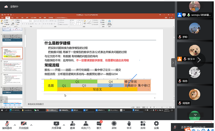 7月16日下午,365英国官网以线上形式举办了数学建模经验分享会,旨在使学生对数学建模竞赛建立更深刻的认识,鼓励广大学子积极参加数模竞赛,同时让同学们从获奖同学的参赛经验及心得体会中吸取经验,提升自我能力。本次活动邀请了在“华为杯”第十八届中国研究生数学建模竞赛中获奖的李问秋同学为大家分享经验。本次分享会由张玉丽担任主持人,365英国上市官网在线部分教师及全体研究生积极参会。